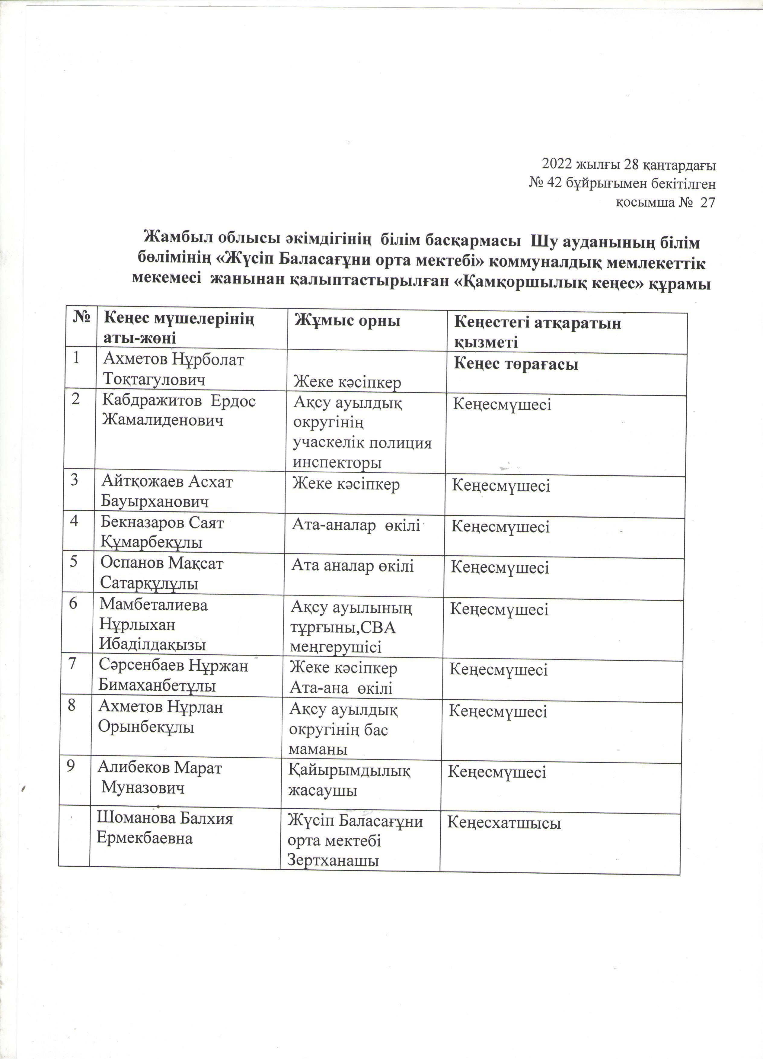 Ж.Баласағұни орта мектеп хаттамасы » Ж. Баласағұни отра мектебі