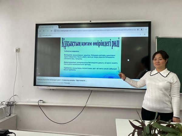 Шу ауданы, Ақсу ауылы «Жүсіп Баласағұни атындағы орта мектебі» КММ. 6 сынып жетекшісі Шымшықова Гүлімай 2022-2023 оқу жылындағы жасөспірімдер арасында құқық бұзушылық пен заң бұзушылықтың алдын алу жоспарына сай қараша айында «Құқығын білген қор болмас» тақырыбында 6 сынып білім алушыларына сынып сағаты өткізілді.Мақсаты: Бала құқықтары оларды сақтау өз құқықтары мен міндеттері туралы түсінік бере отырып, оларды жүзеге асыруға дайындық қабілеттерін қалыптастыру